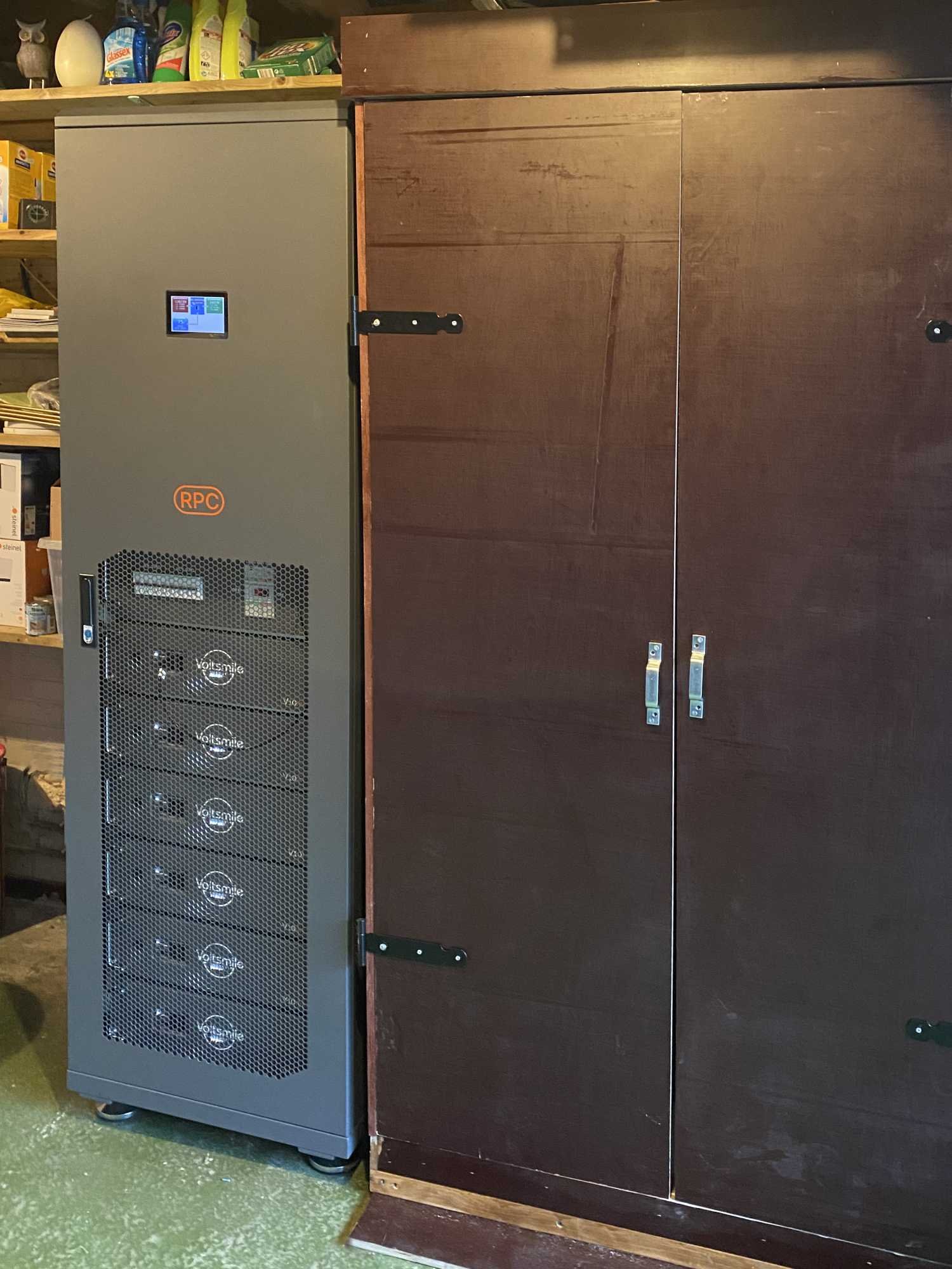 HPS-3 Goud met 30 kWh accuopslag met als extra een MPPT lader waarop 20 extra panelen worden aangesloten. Het HPS-3 met de MultiPlus II 5000 omvormers kan 17A extra boven op de netaansluiting leveren zolang de accu's de extra stroom kunnen leveren. Hierdoor kan de 3 x 40A worden verlaagd naar een 3 x 25A netaansluiting.